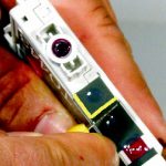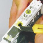 Assicurati che il tappino sia ben fissato. Prima di reinstallare la cartuccia capovolgila e assicurati che non vi siano fuoriuscite di inchiostro, lasciandola in questo stato per 5 minuti. Ora, la cartuccia è pronta per essere resettata con il resettatore universale e reinstallata nella stampante.