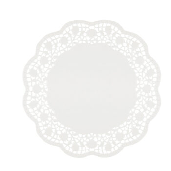 Confezione da 12 sottotorta decorativi, in carta bianca. Diametro: 30cm