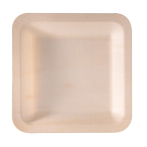 Piatto piano monouso – quadrato – 25 x 25 cm – legno – colore naturale – Signor Bio – conf. 50 pezzi