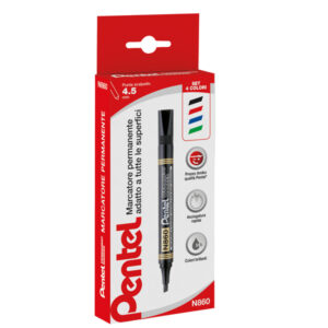 Marcatore permanente N860 – punta scalpello – astuccio 4 colori assortiti – linea Amiko – Pentel